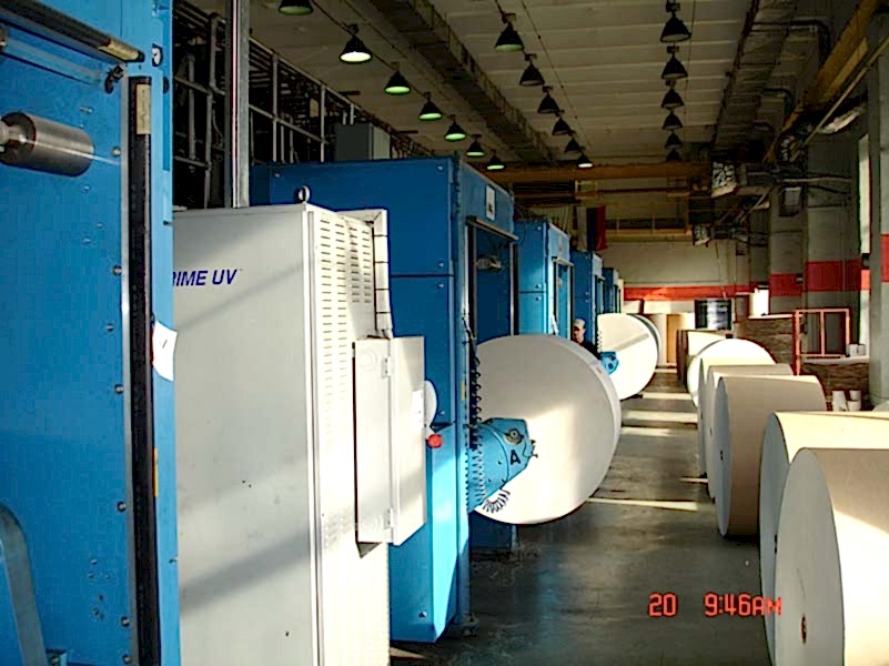 Традиционно подобные машины осуществляют печать на газетных и офсетных сортах бумаги от 42 до 60 г На нашей машине одна из печатных башен оснащена системой ультрафиолетовой сушки PrimeUV (впервые в Казахстана), что дает возможность производить печать на легкомелованных сортах бумаги. Данное решение может использоваться, как самостоятельно - для печати тонких изданий (4 А2 / 8 А3